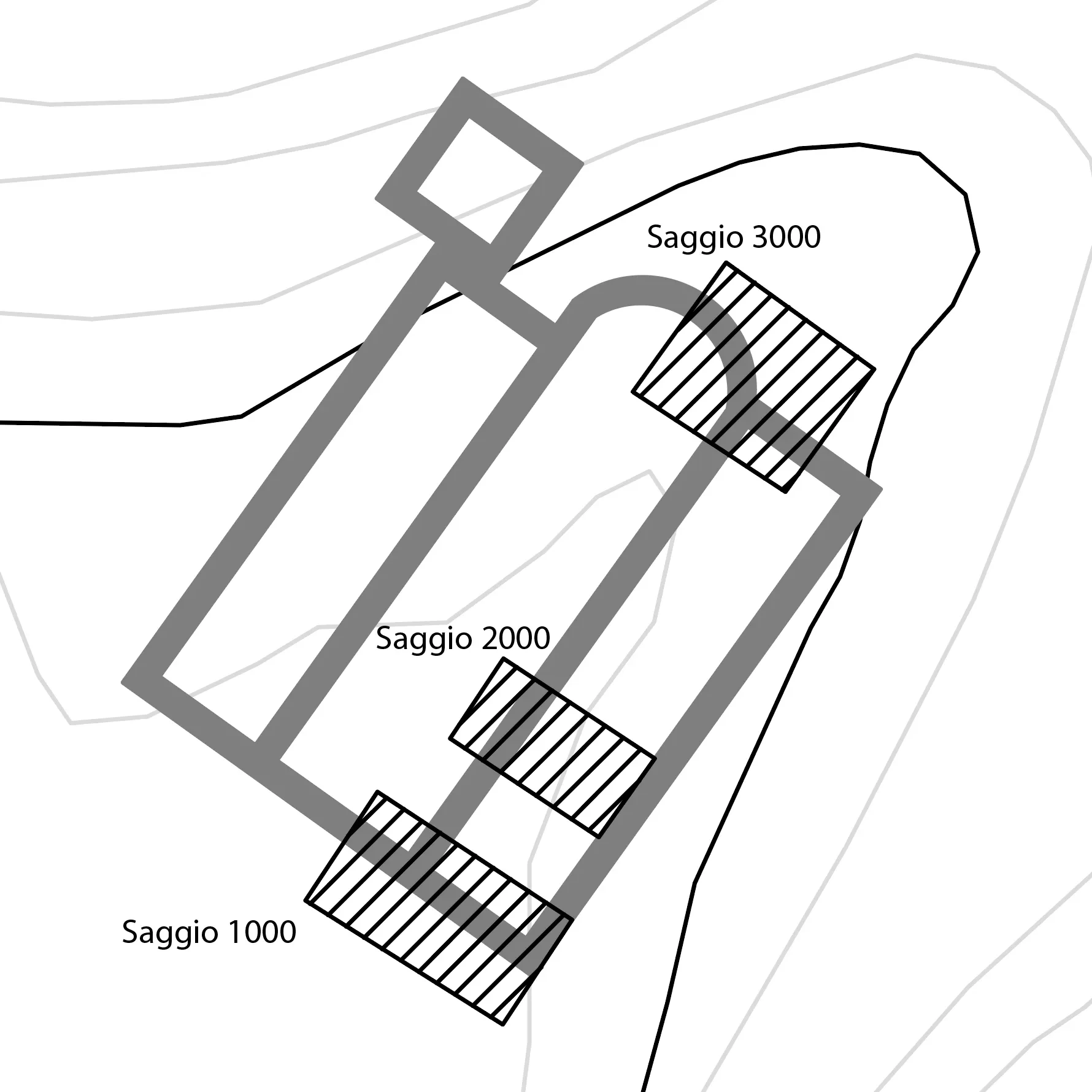- Saggio 1000: la facciata e il sagrato, ove potranno insistere orizzonti cimiteriali;