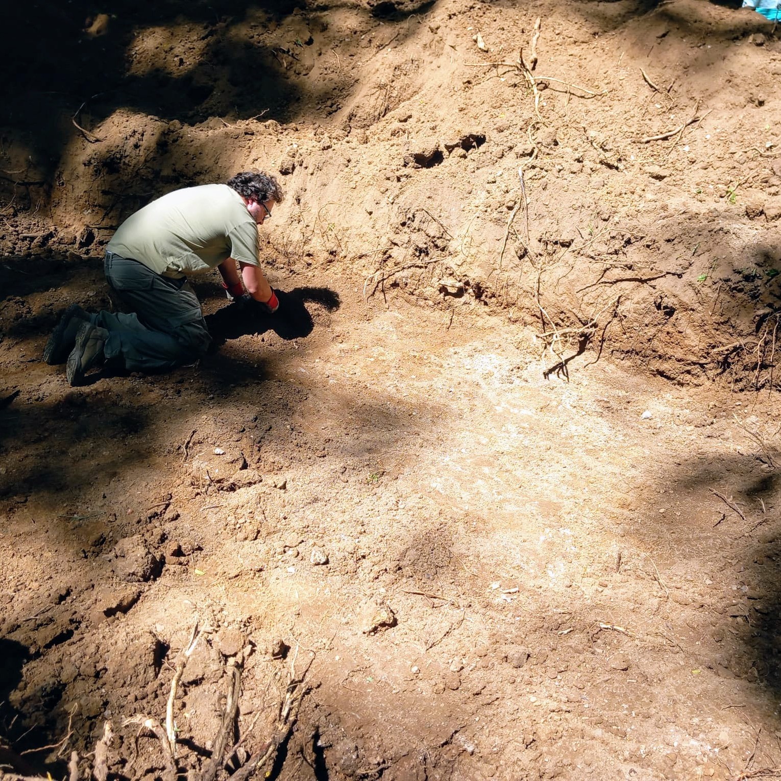Il secondo giorno di scavo è stato impegnato dalla sistemazione delle tre aree aperte col mezzo meccanico nella giornata precedente con la rettifica delle sezioni e la pulitura del fondo delle aree.