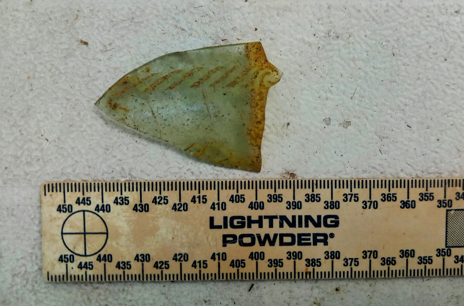 Nella 3000 infine stanno emergendo le fondazioni dell’abside che mostrano imponenti attività di spoliazione, con asportazione dei paramenti esterni. Da quest’area, all’interno dell’abside, proviene un reperto vitreo di grande interesse, la parete di una forma chiusa (ampolla?) che mostra una decorazione sinusoidale dipinta. Potrebbe trattarsi di un oggetto vitreo per uso liturgico di età basso medievale.