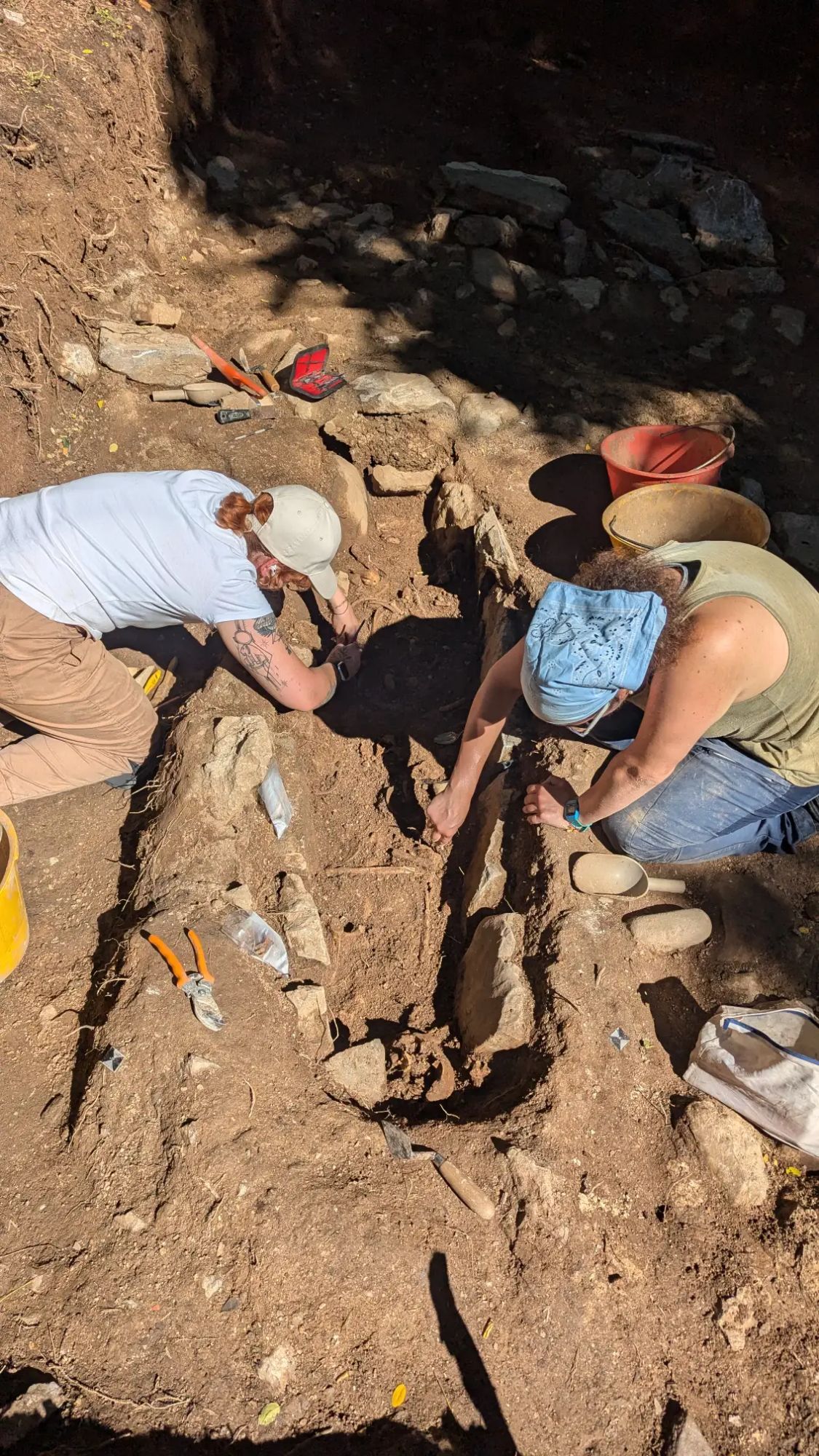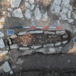 Area 1000: continua ad emergere l’individuo scheletrico USK 1020, un maschio adulto di 40-50 anni, deposto supino con orientamento W-E all’interno della struttura US 1014. Nel riempimento della cassa sono state rinvenute anche altre ossa umane non in connessione relative ad un diverso individuo.