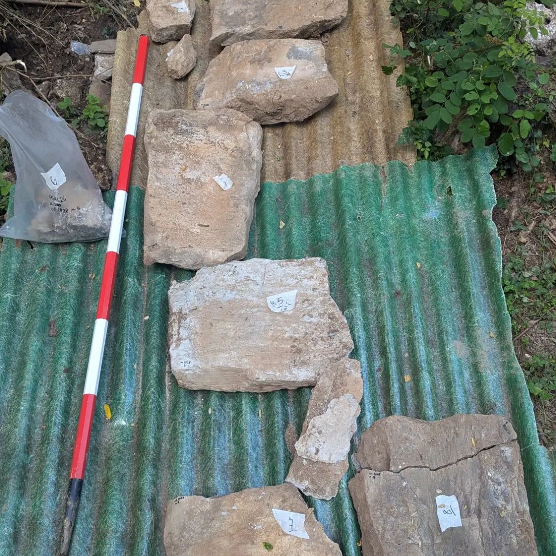 Area 2000: dopo l’attenta rimozione delle lastre di pietra (US 2028) a copertura della cassa sepolcrale US 2029, si sta procedendo a mettere un luce le ossa in essa contenute. Un curiosità: sotto una delle lastre, è stato trovato lo scheletro di un topolino di campagna, presumibilmente entrato nella struttura già in antichità, quando la copertura era ancora visibile e raggiungibile dal piano di campagna.