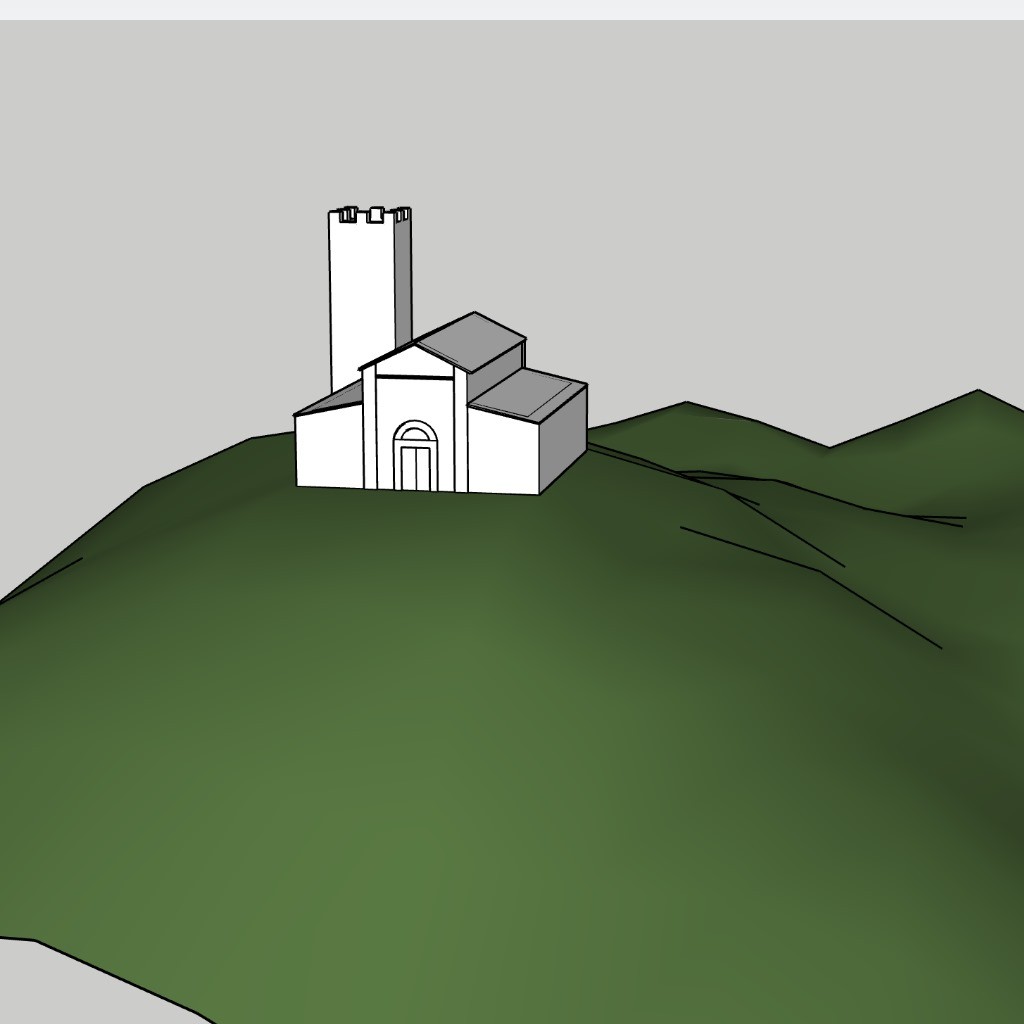 L’antica pieve sorgeva alla quota di circa 290 m s.l.m. alle falde nord orientali del monte Palodina. L’area è facilmente individuabile grazie alla toponomastica e soprattutto grazie ad alcune tracce materiali attribuibili a strutture d’età basso medievale: oltre al muro di contenimento del piano della pieve, appartengono alla stessa epoca alcuni lacerti di murature che occupano la porzione nord occidentale del pianoro, presumibilmente attribuibili alla base della torre campanaria. Altre tracce di strutture che, sempre per tecnica muraria, sono attribuibili al basso medioevo sono collocate a est, lungo il pendio terrazzato al di sotto del pianoro della pieve.